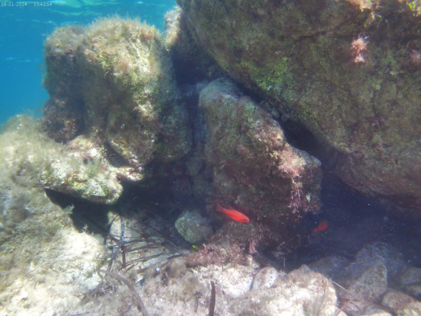 Les herbiers de posidonie, présents à proximité de la plage, jouent un rôle essentiel en servant de refuge, de zone d’alimentation et de reproduction pour une grande diversité d’organismes marins. On peut notamment y observer différents poissons, comme les sars ou les girelles, mais aussi des étoiles de mer, des oursins et d’autres petits animaux qui vivent entre les rochers et les herbiers.