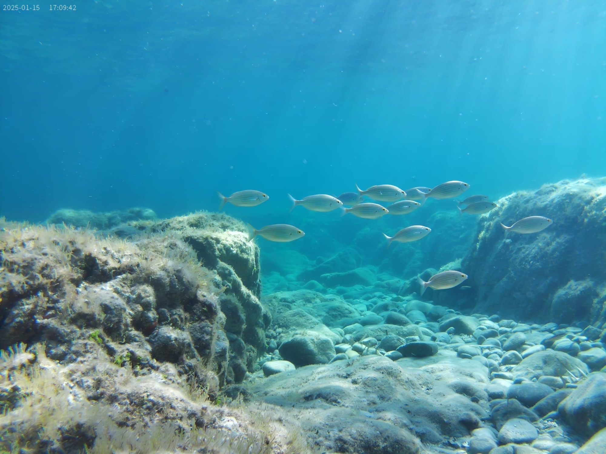 Les herbiers de posidonie, présents à proximité de la plage, jouent un rôle essentiel en servant de refuge, de zone d’alimentation et de reproduction pour une grande diversité d’organismes marins. On peut notamment y observer différents poissons, comme les sars ou les girelles, mais aussi des étoiles de mer, des oursins et d’autres petits animaux qui vivent entre les rochers et les herbiers.